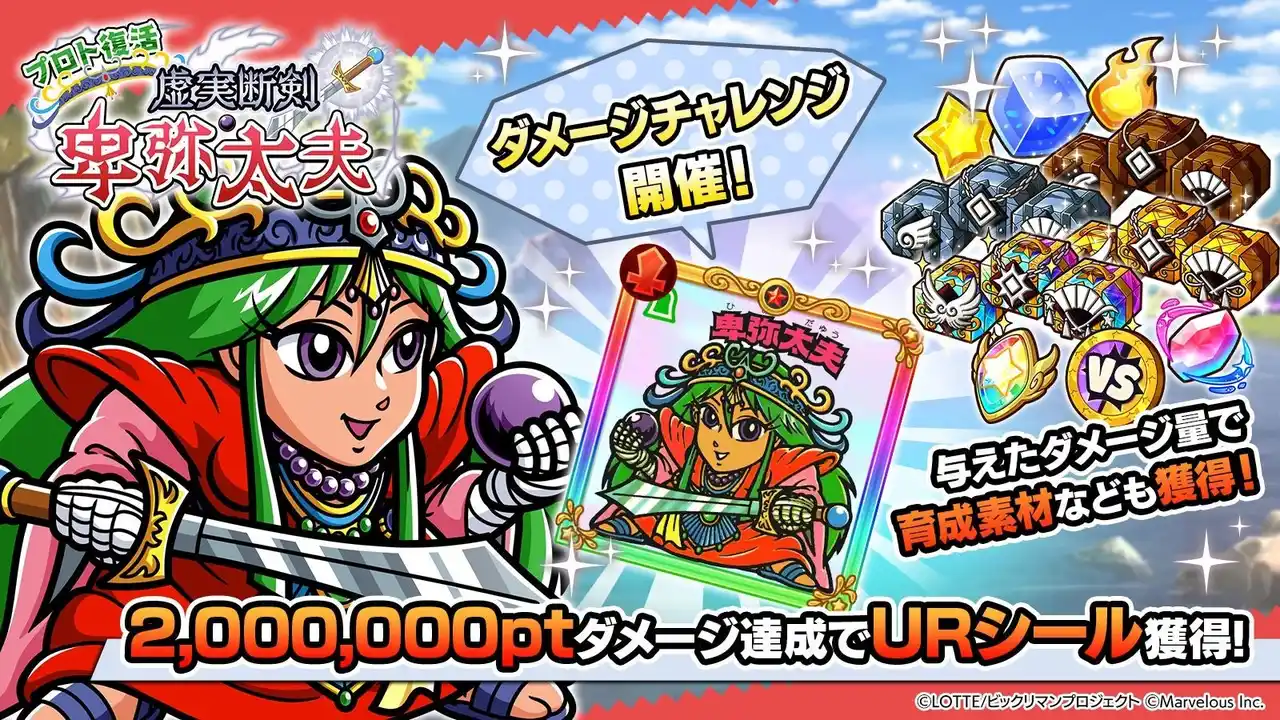 株式会社マーベラス(代表取締役社長:照井 慎一/所在地:東京都品川区)は、シールコレクションRPG『ビックリマン・ワンダーコレクション』にて期間限定イベント「超念魔体覚醒・ワンダーマリア」が2025年8月29日に追加されたことをお知らせいたします。また併せてダメージチャレンジイベント「プロト復活 虚実断剣・卑弥太夫」の開始、「覚醒せし超念魔体とゴードン師1ガチャ」、「ワンコレシールガチャ10」等を開始いたしました。 |