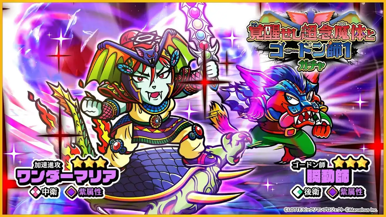 新たな☆3キャラクター「[加速進攻]ワンダーマリア」と、「[ゴードン師]瞬動師」が登場する、「覚醒せし超念魔体とゴードン師1ガチャ」を開始いたしました。 |