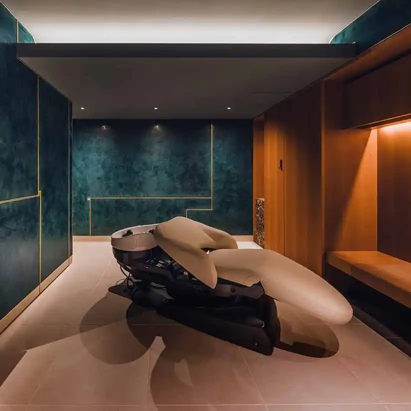 クレーレのヘッドスパは、年齢や性別を問わずすべての方に心から喜ばれる特別な贈り物です。ラウンジでは、ドイツの「黒い森」を再現したパルダリウムでお客様をお出迎え。数寄屋建築も手がける一流の手仕事によって生み出されたサロンは、金箔のカウンターやスタッコアンティーコの壁、国内選りすぐりの絨毯など、贅を極めた本物の空間です。 |