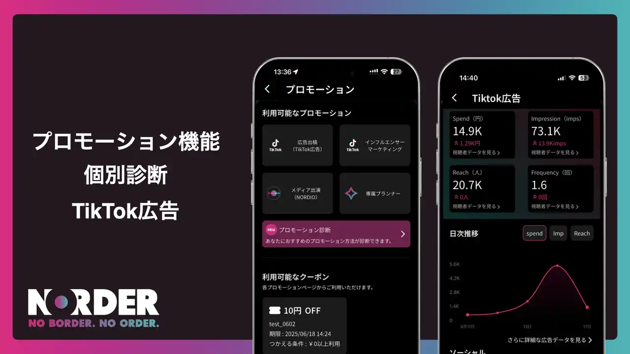 今回のキャンペーンは、これまで支えていただいたユーザーの皆さまへの感謝を込めるとともに、アップデートで進化したNORDERをより多くの方に体験いただく機会として企画しております。 |