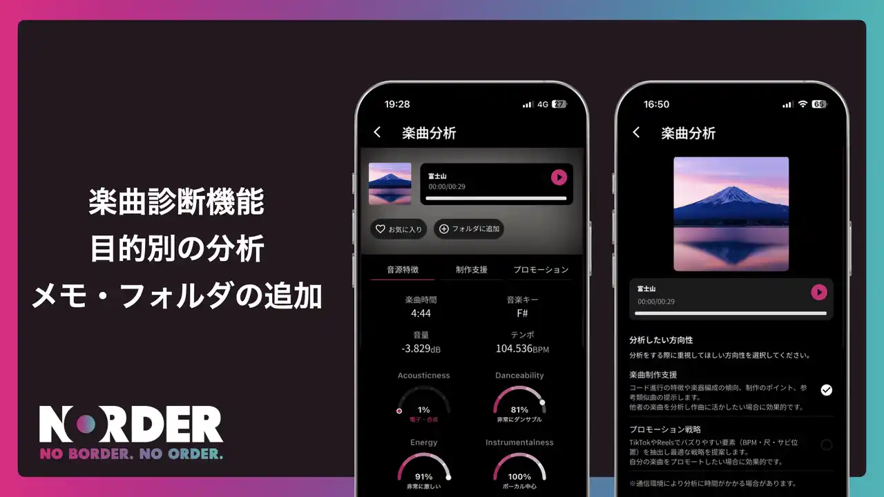 制作・分析・管理まで一貫して行えるよう、楽曲診断機能を大幅にアップデートしました。 |