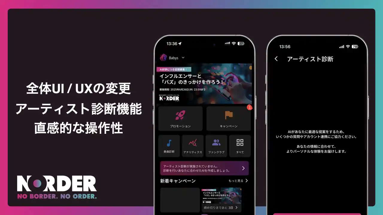NORDERは、今回の大型アップデートにとどまらず、アーティストの活動をより包括的にサポートするための機能拡張を継続的に予定しています。今後はプロモーションの幅をさらに広げるとともに、日々の活動管理まで視野に入れた進化を目指します。 |