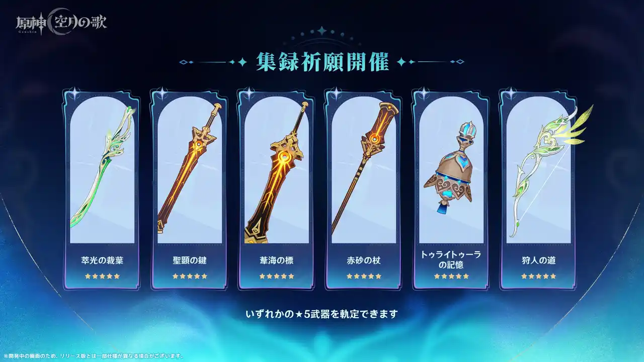 そして新バージョンのリリース記念と『原神』5周年記念を祝して、通常祈願の★5キャラクターを1名無料で招待できるほか、ログインボーナスで紡がれた運命×10を獲得できたり、メールにて原石×1,600と2種類のナド・クライテーマの便利アイテムを受け取ることができるなど、様々な報酬をご用意しております。 |