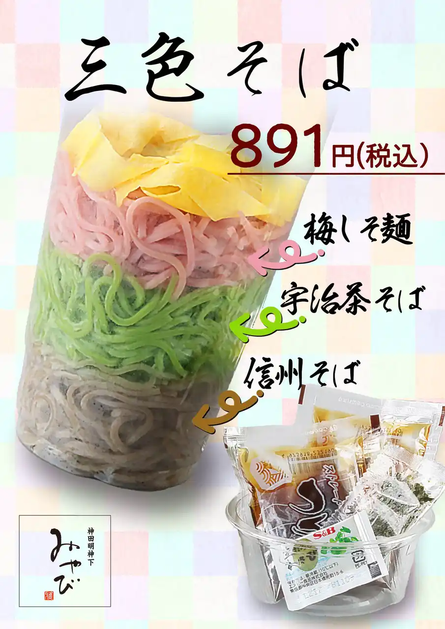 東京駅の催事出店で大好評だった「三色そば」が、この度「エキュート秋葉原」に帰って来ます! |