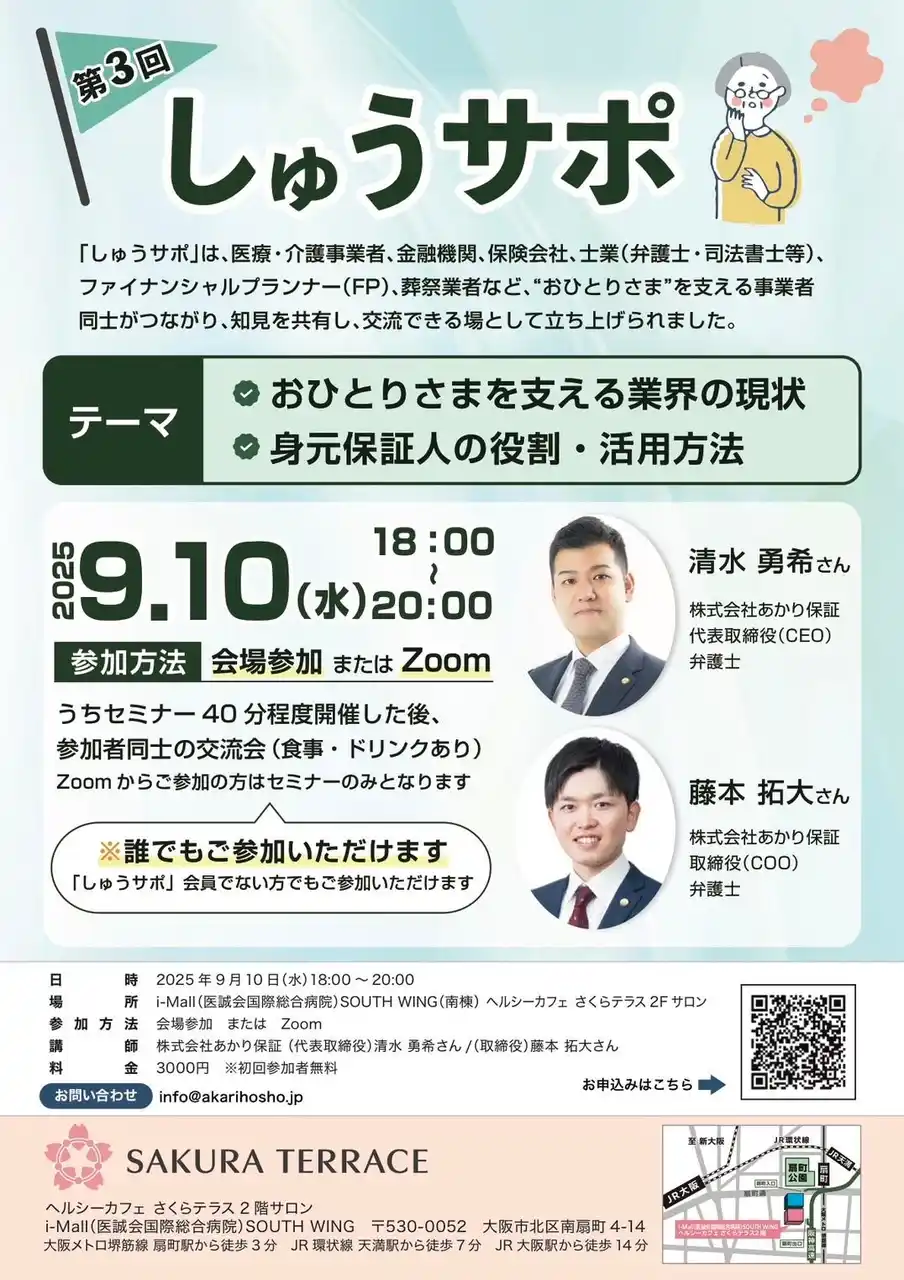 【株式会社あかり保証】 おひとりさまを支える事業者コミュニティ 第3回「しゅうサポ」を9月10日に開催