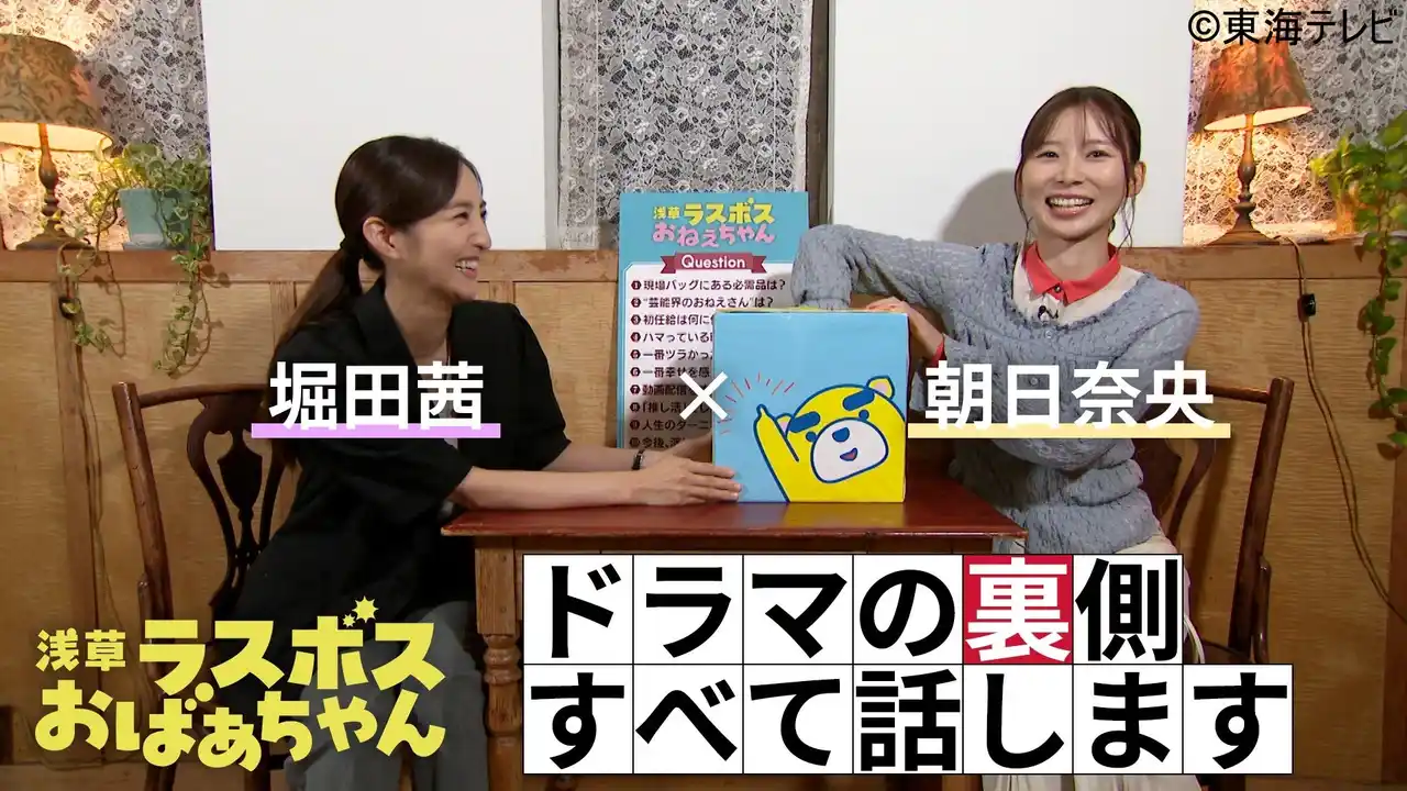 配信のスピンオフコンテンツ「浅草ラスボスおねえちゃん」。最終回の今週は、視聴者から募集したド直球な質問に、堀田茜と朝日奈央が全力回答!私生活のことから仕事のことまで、選ばれた質問に着飾らず、笑いも忘れずにトーク。プライベートでも大の仲良しな2人だからこそ生まれる、ドラマとは一味違った心地よい時間をお届け! |