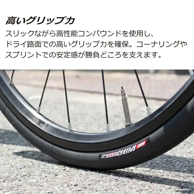 SPEED52 AIRPLUSは、勝利を狙うロードレーサーのために生まれた超軽量クリンチャータイヤです。