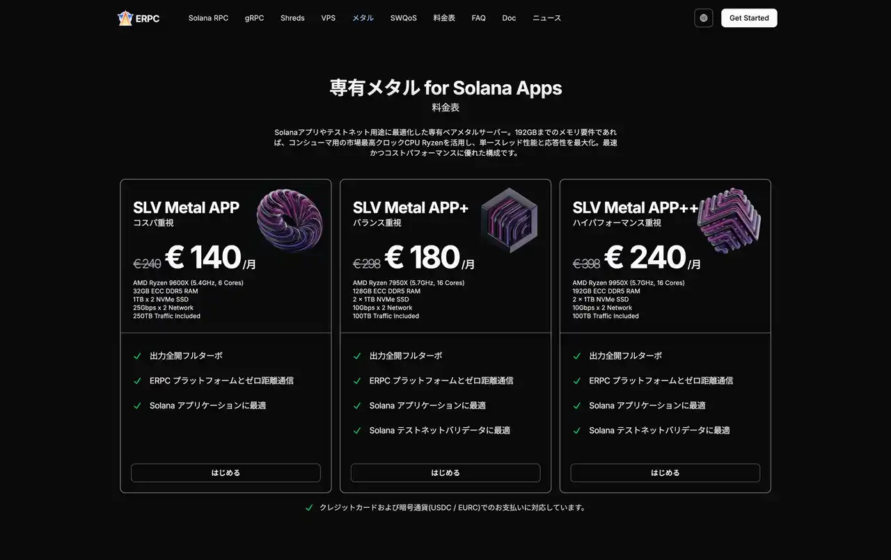 私達の VPS は拠点ごとに Solana 専用エンドポイントと同一ネットワークにデプロイされ、外部ネットワーク通信を削って最短往復を実現します。 |