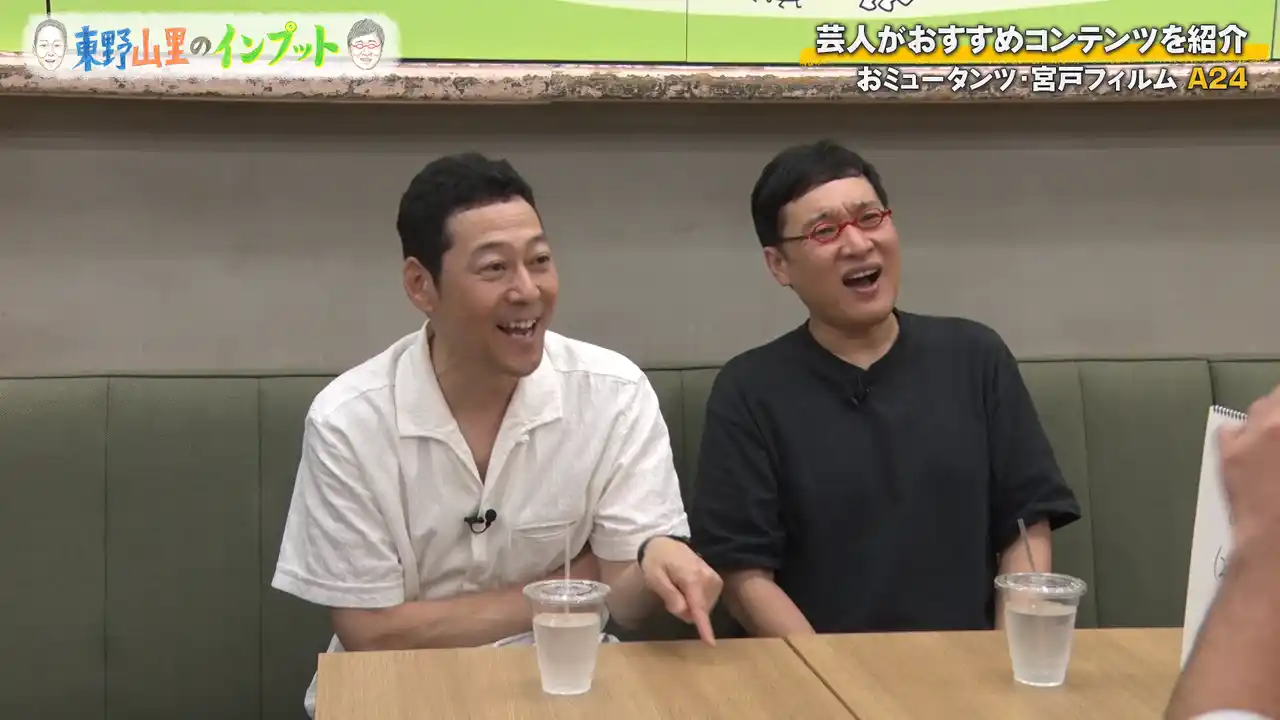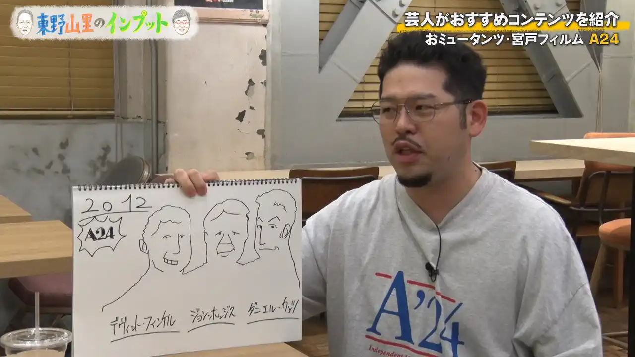 「A24は刺さる人にしか刺さらない。自分で見つけてほしい映画だらけ」としながらも、宮戸がおすすめ作品を紹介する一幕も。東野&山里も興味津々に話を聞きます。 |