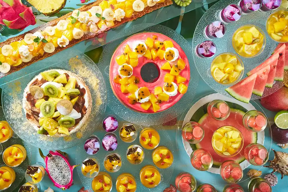 マンゴーやドラゴンフルーツ、パイナップルをふんだんに使ったトロピカルスイーツの数々を心ゆくまでご賞味いただけます。 |