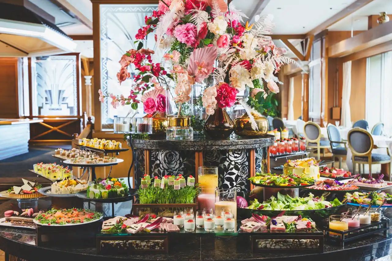 エレガントなフレンチレストラン「フォーシーズン」では、9月13~14日の2日間、色とりどりの前菜やスイーツなどの華やかなフレンチブッフェをご堪能ください。 |