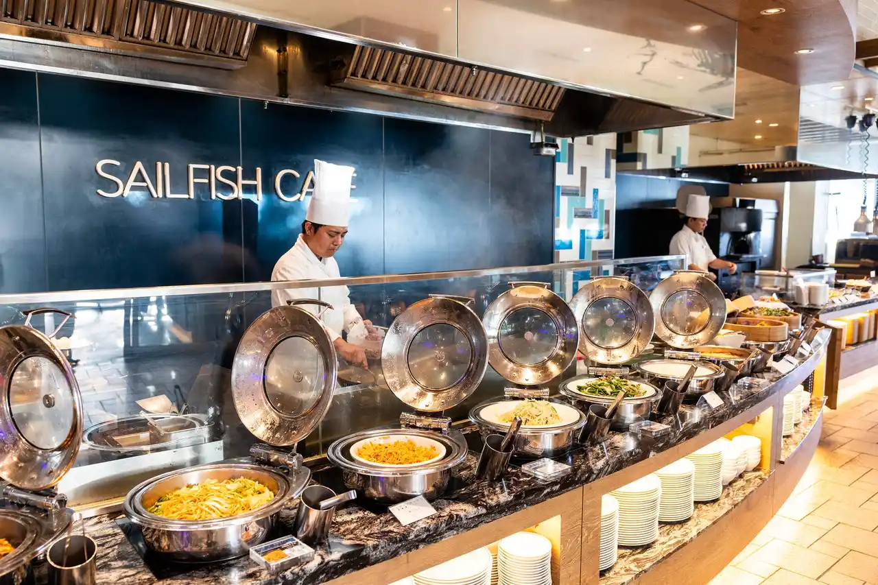 「ありがとう」の気持ちを込めて、65歳以上の方は2日前までのご予約でサンキュー390円割引にて、お楽しみいただけます。海風を感じるブッフェレストラン「セイルフィッシュカフェ」では、9月13~15日の3日間限定で「和・洋・中」のスペシャルブッフェ料理をお召し上がりください。 |