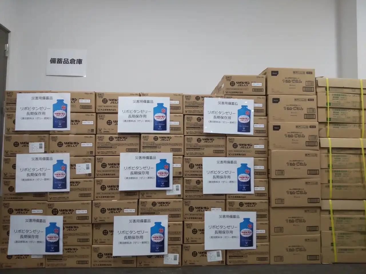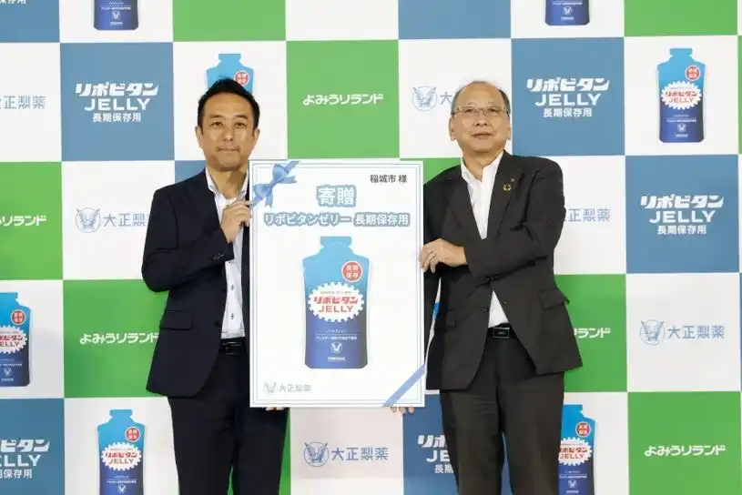 ■地域の防災力向上を目指し、大正製薬より稲城市にリポビタンゼリー長期保存用を寄贈 |