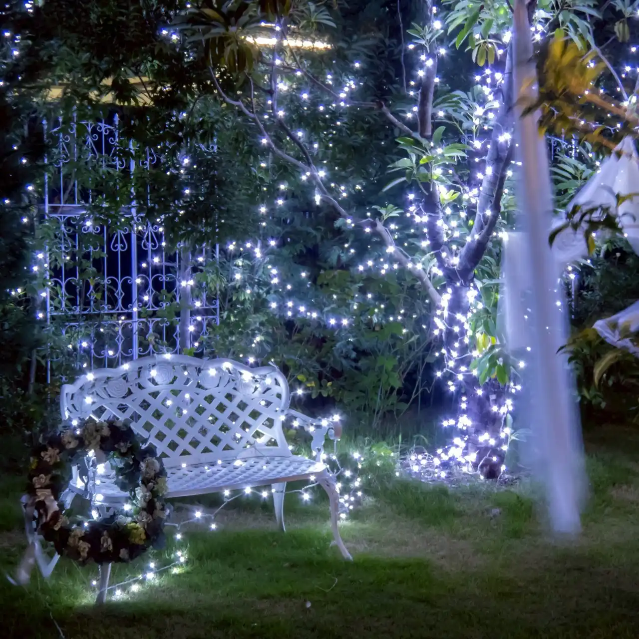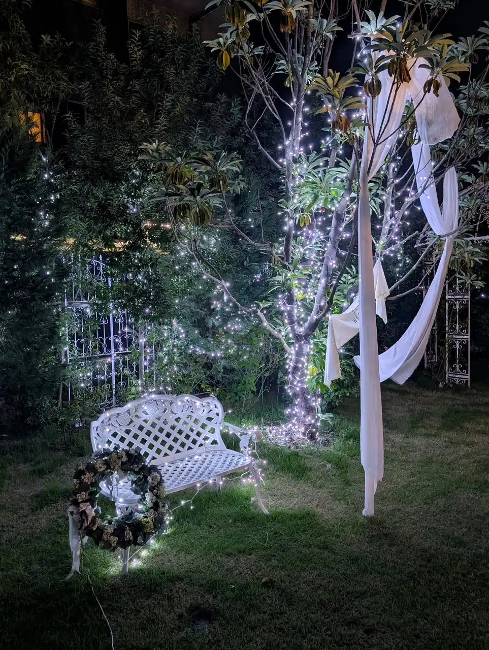 星降る庭の奥のベンチはインスタ映え抜群。 |