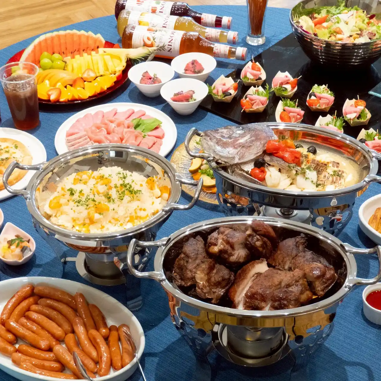 ビール、ワイン、ハイボール、カクテル、ソフトドリンクなど、豊富なラインナップを飲み放題で。 月明かりと星空の下、グラスを傾ける至福のひとときをお楽しみください。 |