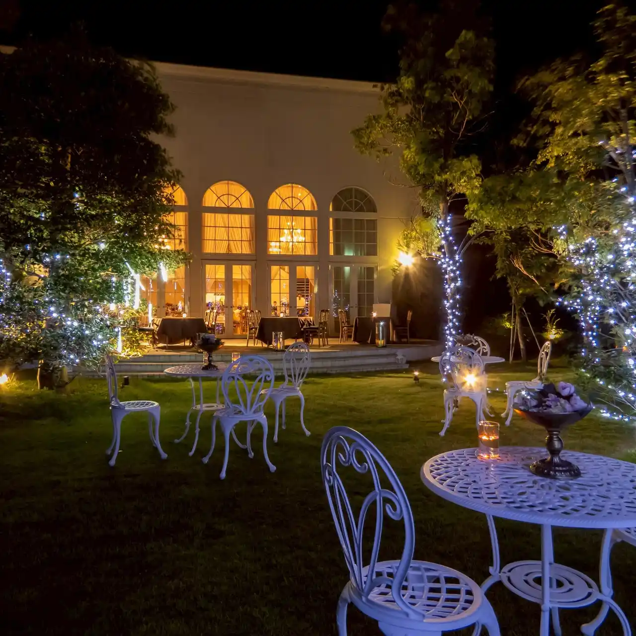 イルミネーションに輝くローズガーデンや、クラシカルなホール席を舞台に、大切な人と過ごす上質な秋の夜。世界的庭園デザイナーが手掛けた「錦庭」と白亜の洋館が織りなす非日常空間で、倉敷初の“ラグジュアリー・ビアガーデン”を御体感いただけます。 |