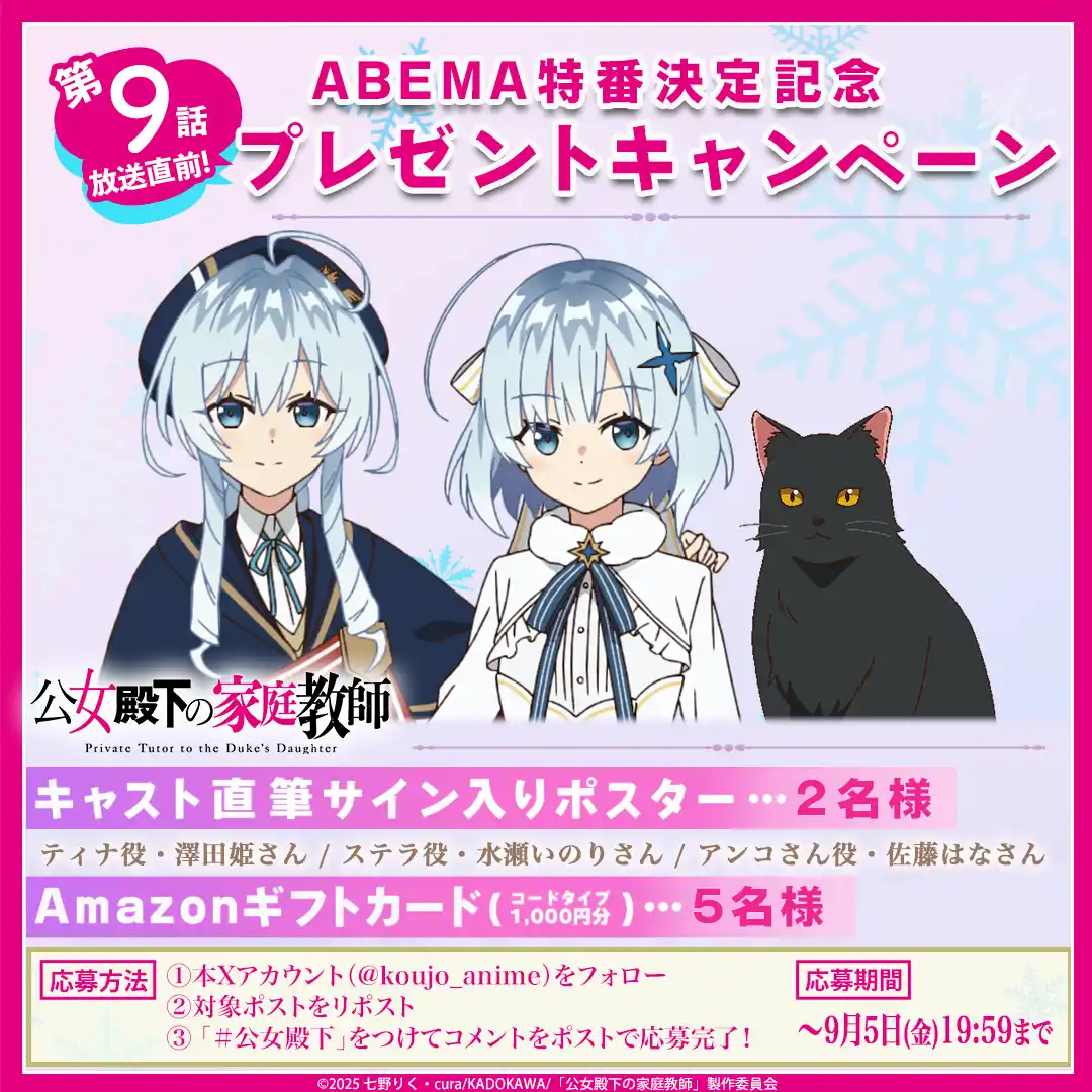 2025年9月5日(金)20:00より、「『公女殿下の家庭教師』第9話直前!ABEMA特番」の放送が決定しました。 |