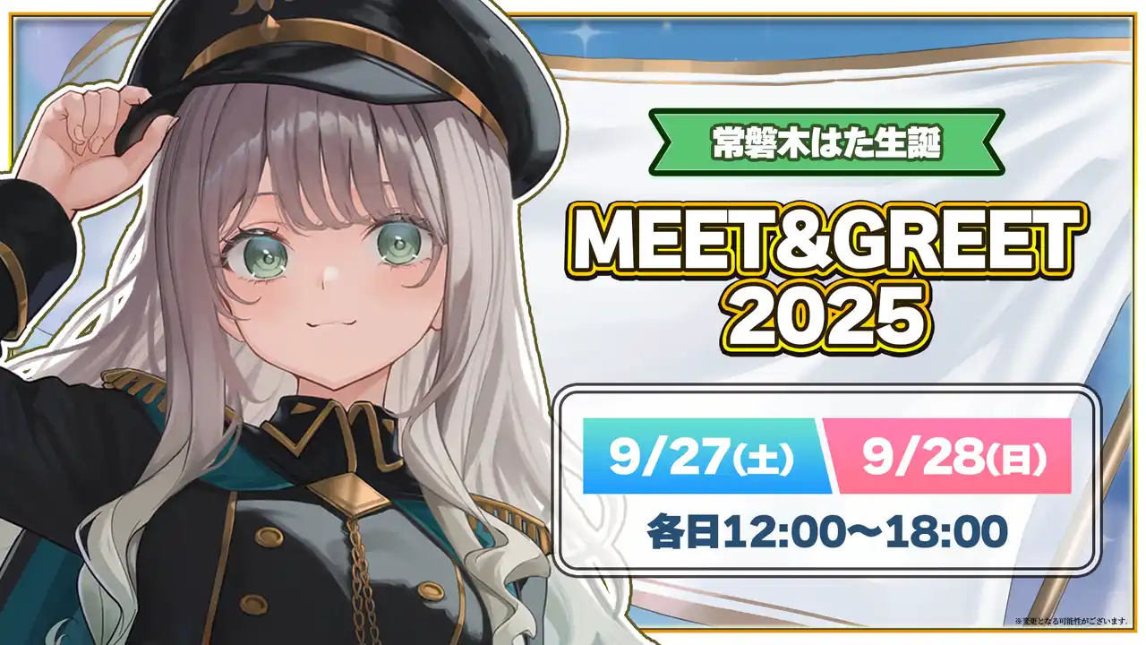 イベント名:常磐木はた生誕 MEET&GREET 2025 開催日時:2025年9月27日(土)、9月28日(日) 各日12:00~19:00 参加タレント:常磐木はた 会話時間:1枠3分 参加料金:1枠 4,000円(税込) |