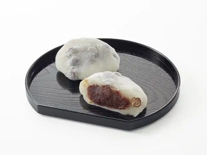 赤えんどう豆を混ぜ込んだ生地で、自家炊き小豆粒あんを包んだ大福です。長崎県産いそしおを使用しています。 |