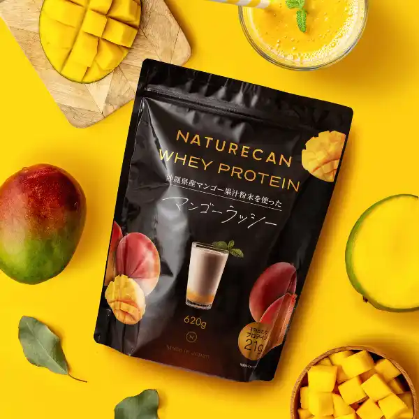【沖縄県産のマンゴー果汁パウダーを使用をふんだんに使用】ホエイプロテイン(WPC)沖縄マンゴーラッシー味 - 20%OFF |