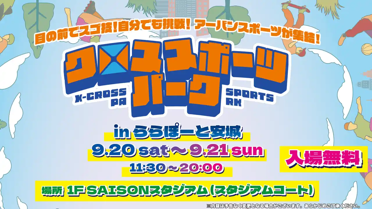 株式会社MoveX(本社:東京都品川区)は、親子で楽しめる体験型アーバンスポーツイベント「クロススポーツパーク in ららぽーと安城」を、2025年9月20日(土)・21日(日)の2日間、ららぽーと安城(愛知県安城市)にて開催します。 |