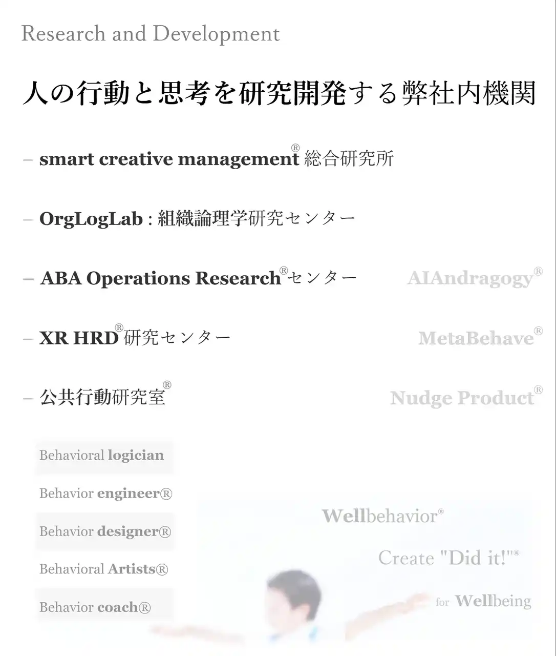 ※ リクエスト株式会社は、「Behave:より善くを目的に」を掲げ、国内338,000人の組織で働く人たちの行動データに基づいた組織行動科学(R)を中核ブランドとし、人間の行動と思考を研究開発する5つの機関が連携。これまで980社以上の人的資本開発を支援してきました。 |