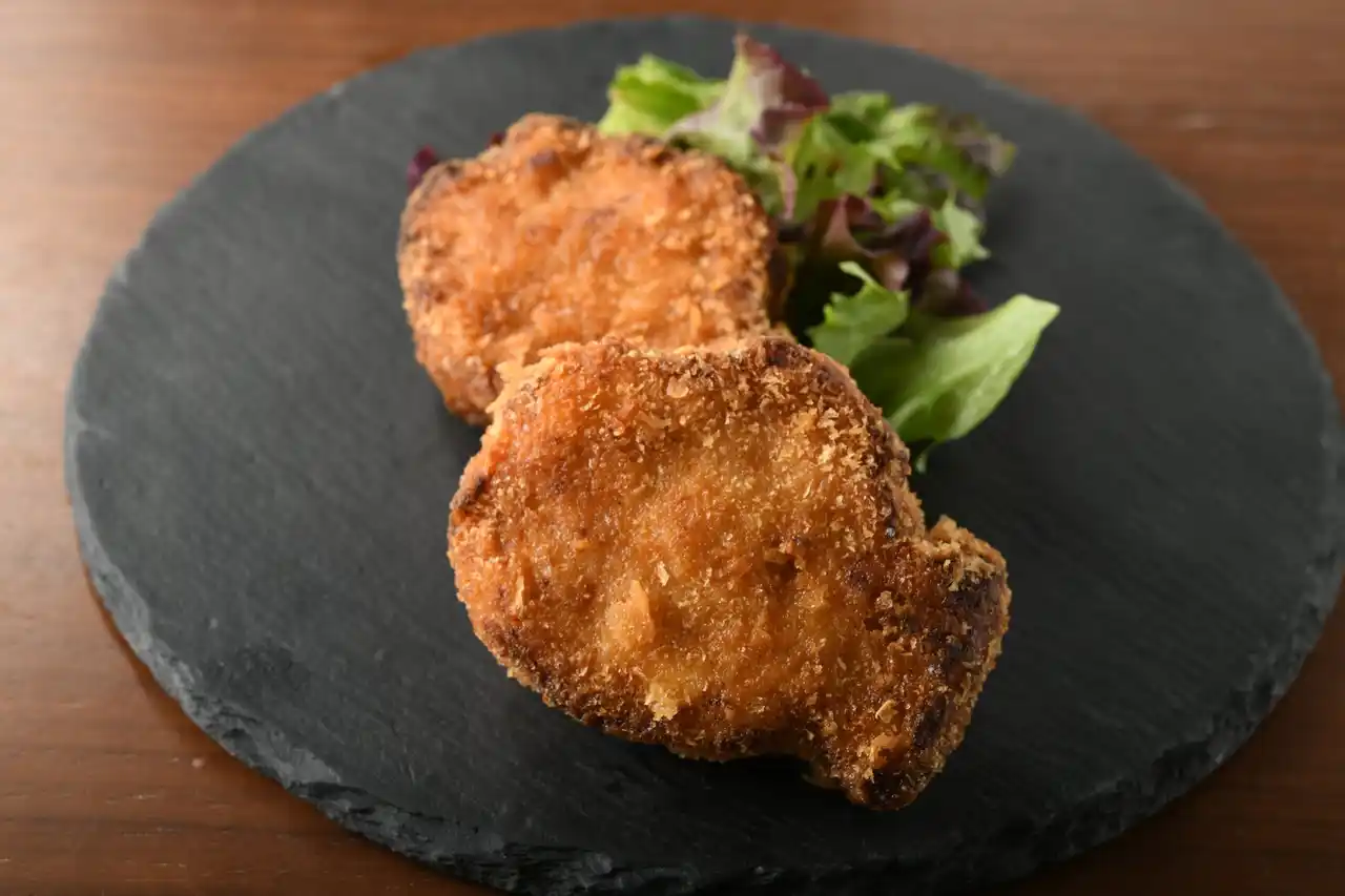金メンチ:金目鯛を使用した特製メンチカツ。秘伝の煮付けタレを使用し、外はサクサク、中はふっくらジューシーに仕上げました。深夜ならではの特別感と食べやすさを意識したラインナップで、夜更けに立ち寄るお客様の“ご褒美めし”として楽しんでいただける内容となっています。 |