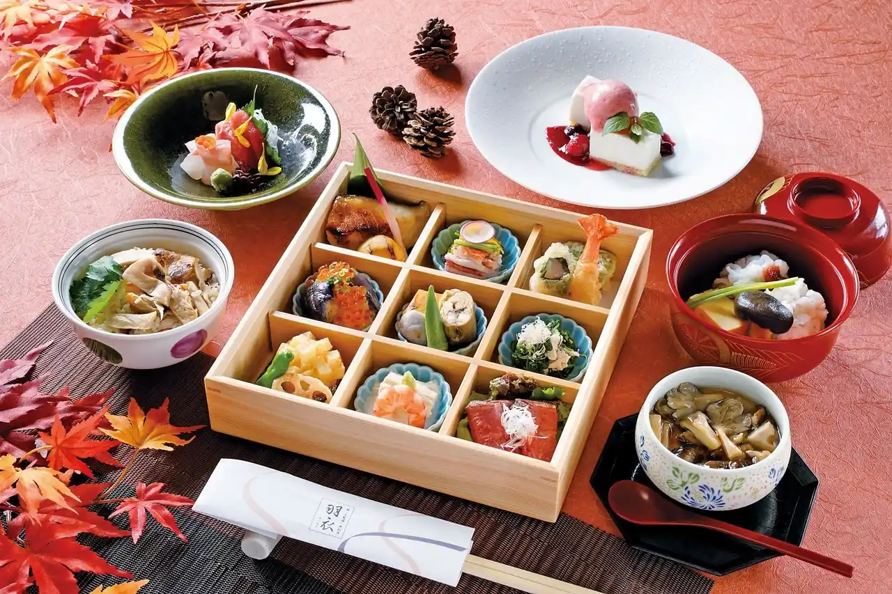 食欲の秋と言われる季節を満喫できる見た目にも色鮮やかなランチで、鮨・天麩羅・鉄板焼「羽衣」の旬の食材を存分にお愉しみ頂けるお料理をお愉しみください。 |