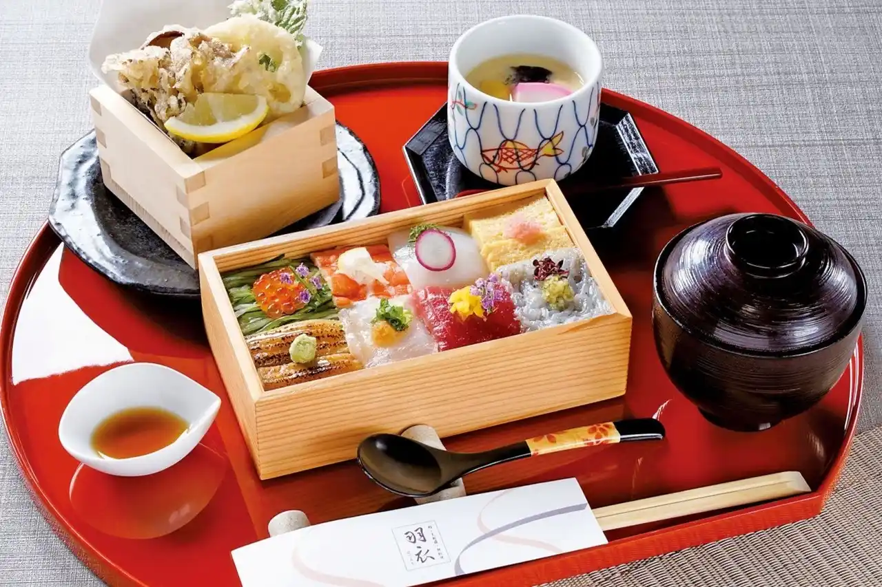 明治記念館(東京都港区元⾚坂2-2-23)の館内レストラン、鮨・天麩羅・鉄板焼「羽衣」では、9月平日ランチ数量限定で「羽衣」自慢の鮨職人が手掛ける「色彩ちらしずし御膳(3,000円・税サ込)」をご提供するほか、土日祝日を含むランチ数量限定で色々なものを少しづつお楽しみいただける季節の和食膳「旬彩御膳(5,000円・税サ込)」をご用意してお待ちしております。 |