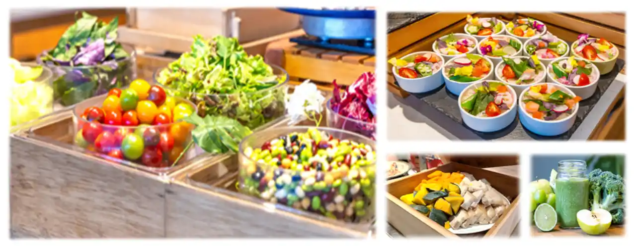 | 沖縄の伝統野菜は「島野菜」と呼ばれ、沖縄の気候や風土に適した栄養価の高い食材として知られています。そんな旬の沖縄県産の野菜を使用した手作り総菜サラダは、ミネラル・栄養たっぷりの逸品です。「沖縄野菜のちらし寿司」や「沖縄野菜のスーチカ風蒸籠蒸し」「沖縄野菜のスムージー」など健康メニューも充実しています。 | ||||||||||||||