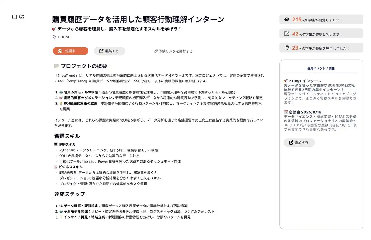| BOUNDは2025年9月より、学生向けサービスを正式に公開します! | ||||||||||||||||||||