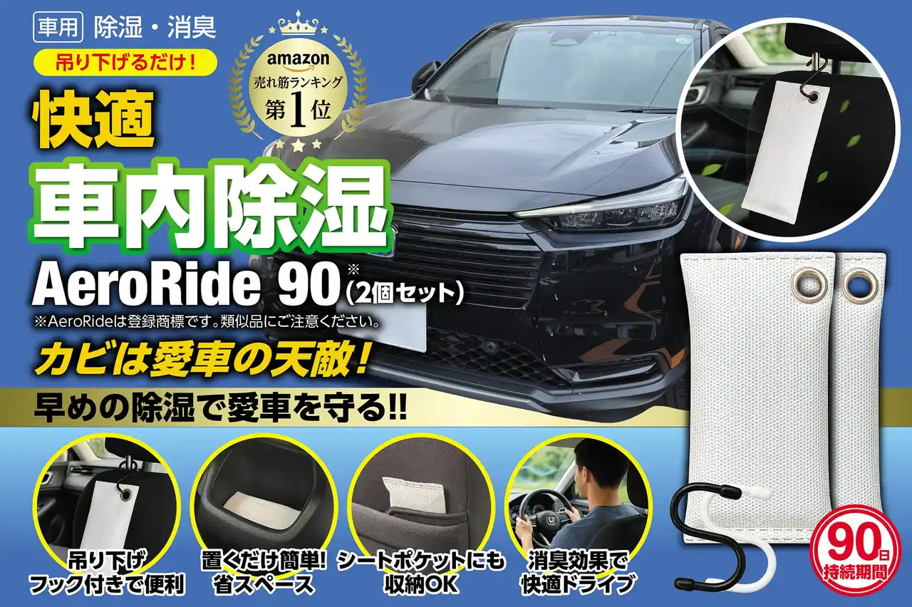 | 車内の湿気や結露、カビ臭に特化した車用除湿剤 AeroRide90(会社:AeroRide合同会社、代表:上村 十勝(カミムラ トカチ)、本店:東京都渋谷区)が、Amazonの該当カテゴリにおいてベストセラー売上1位を獲得した。 | ||||||||||||