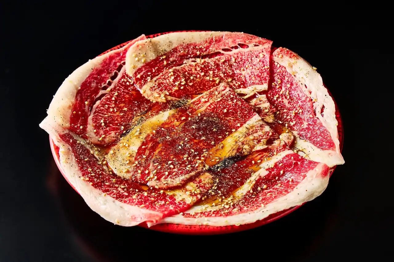 近江牛のバラ肉の中でも、厳選した上モノ部位である、「カイノミ、フランク、インサイド、タテバラ」のみを使用。秘伝の揉みダレを組み合わせることで、とてつもない旨味が出てくるのが特徴です。 |
