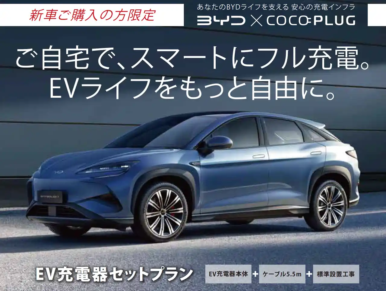 EV充電器の販売・設置を手がけるココプラグ株式会社(本社:愛知県名古屋市中村区名駅1丁目1−1JPタワー 代表:片岡浩二)は、BYD AUTO 名古屋北(所在地: 愛知県小牧市間々本町123)にて、BYD車両のご購入者様を対象とした「自宅用EV充電器セットプラン」の提供を開始いたしました。 |