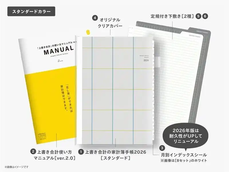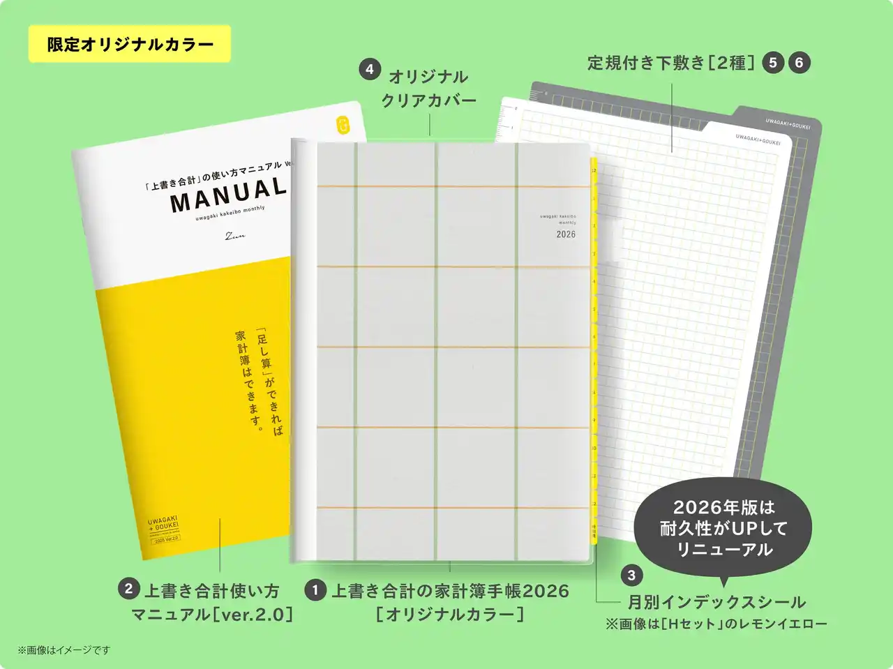 | 2025年8月19日(火)正午~9月18日(木)正午までの予約期間中のご予約で、家計簿の記入がはかどる便利なグッズが付いたセット商品が、通常4,290円(税込)のところ、3,850円(税込)でご購入いただけます。 | |||||||||