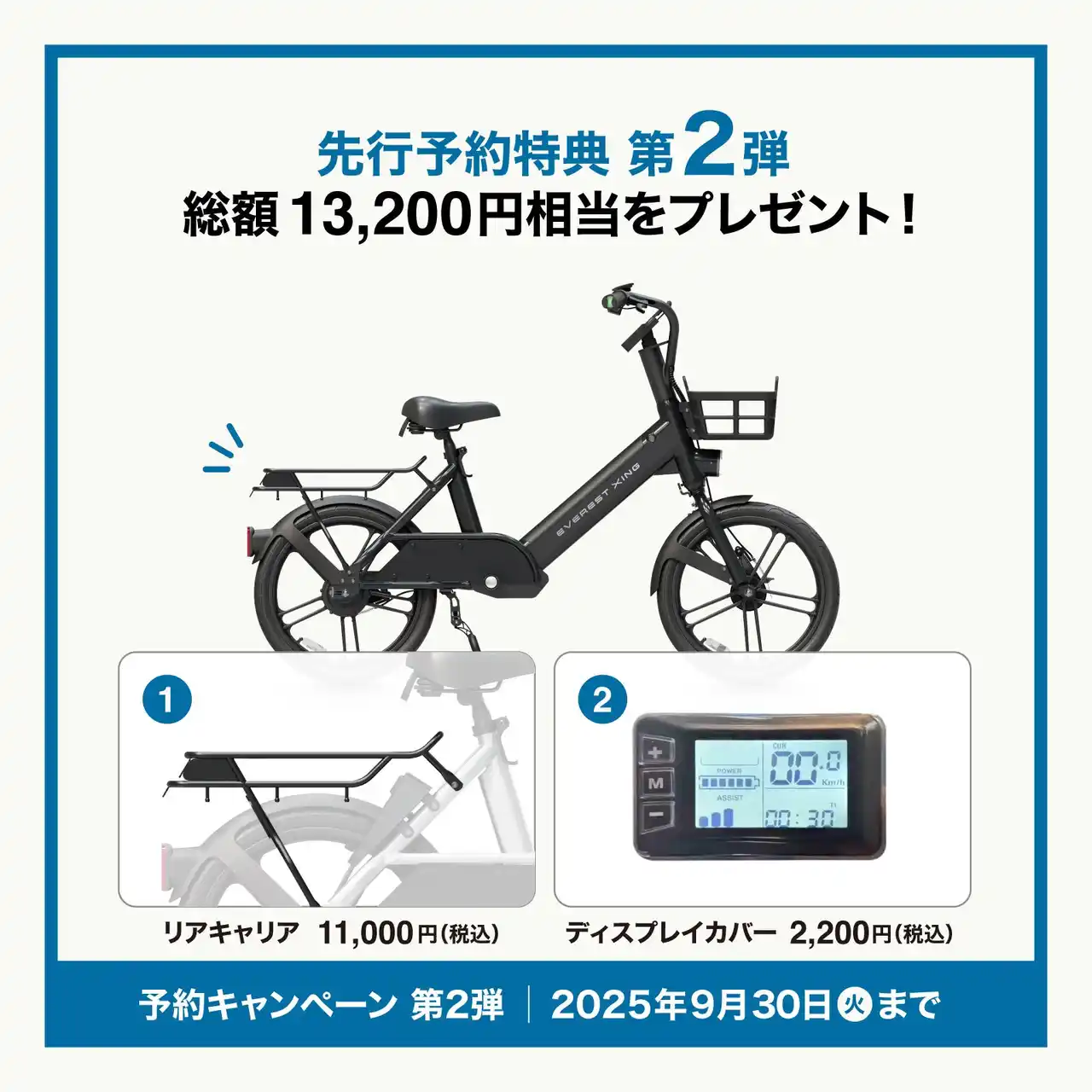 次世代型製品を展開する株式会社Acalie(本社:愛知県名古屋市、代表取締役:中友 孟涛、以下 Acalie)の最高峰モビリティEVEREST XING CITY(特定小型原動機付自転車:以下特定原付)、CITY Plus(電動アシスト自転車)の2機種が、2025年9月1日(月)から公式ECサイト・全国の提携店舗で予約キャンペーン第2弾をスタート。2025年9月1日(月)~30日(火)までの期間、EVEREST XING CITYシリーズ予約特典としてリアキャリアとディスプレイカバー総額13,200円相当をプレゼントします。 |