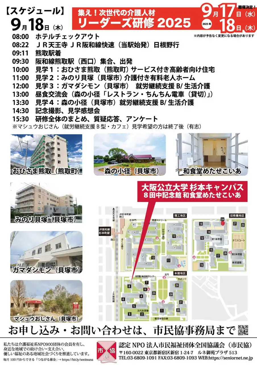 | 介護系事業者900団体の会員を有し、身近な地域での助け合い・支え合い、優しい福祉のある地域社会づくりを推進している認定特定非営利活動法人市民福祉団体全国協議会(本社:東京都新宿区、代表理事:鷲尾公子・とよしま亮介、略称市民協)は、会員のチカラを育て、現場の活動を繋げるため、2025年9月17日から18日にかけて、リーダーズ研修2025in大阪「第10期介護保険事業計画目前!2040年に備えよ!」を開催します。申し込みの最終締め切りは9/10まで!締切間近です。お急ぎください。 | |||
