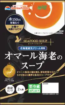 | オマール海老の頭を使用したスープのもとです。水 150cc を加えるだけで、家庭でお手軽にオマール海老のスープが味わえます。 | |||||||||||||||||||