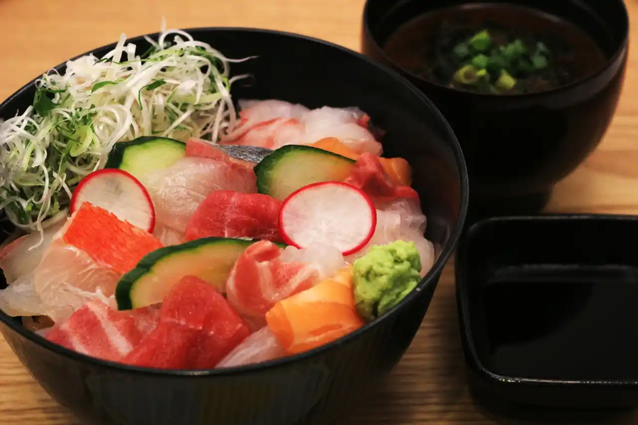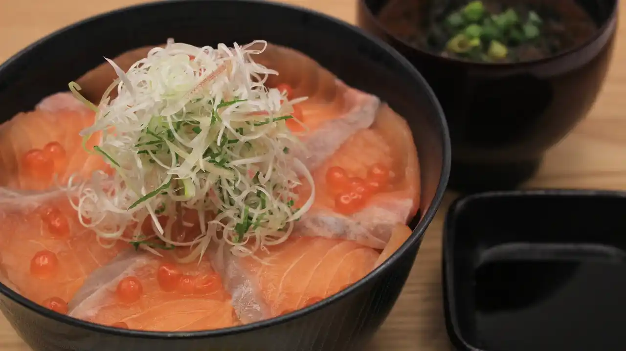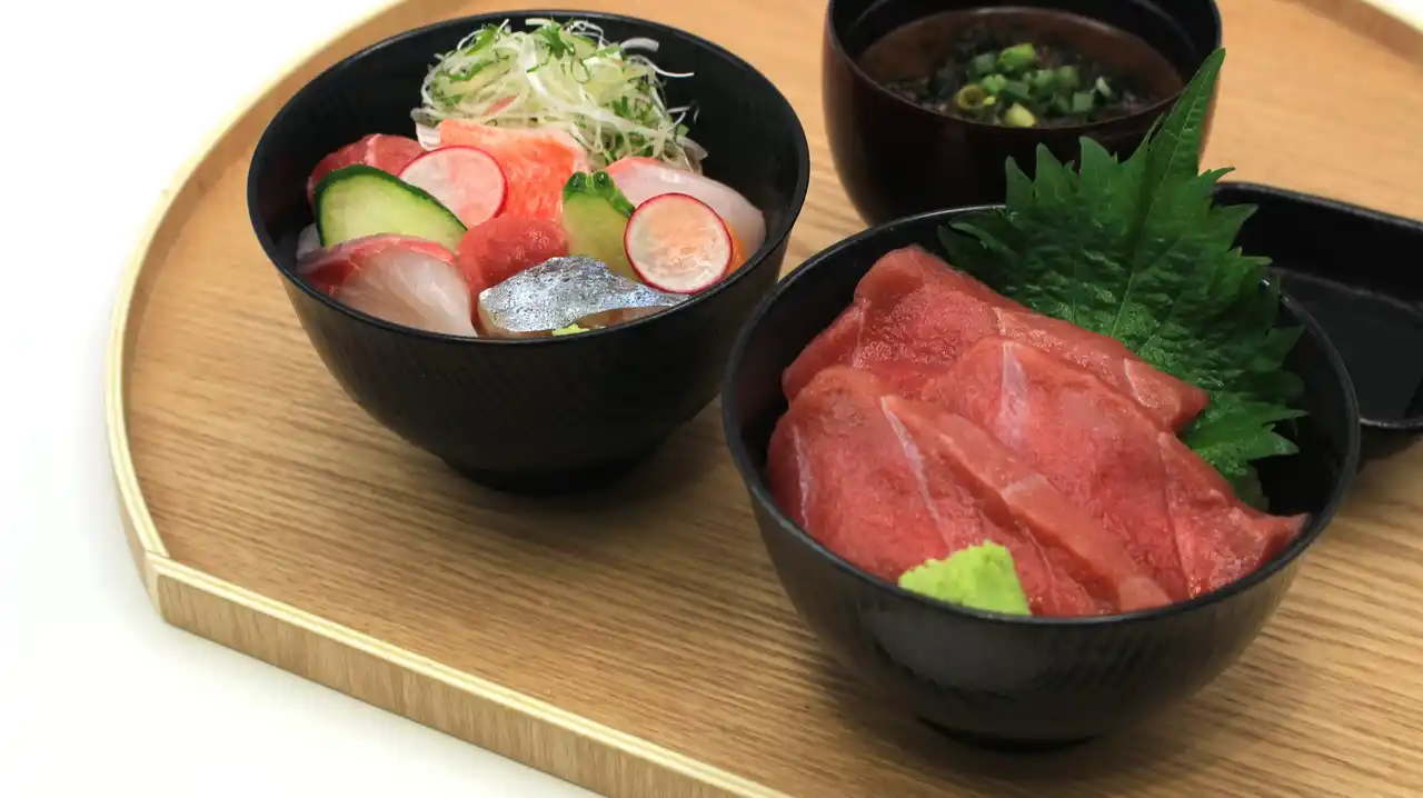 オープンから3日間、「選べる二色海鮮丼セット 赤だし付き」をネタ1.5倍増量で! |