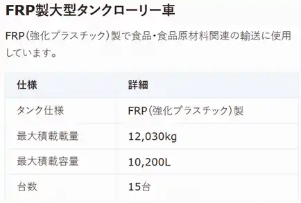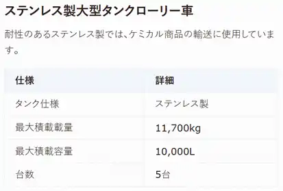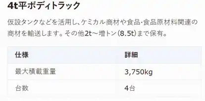 | 1.5トンから15トンまでパワーゲート車・平ボディ・箱車・ウイング車など約150台を保有 | |||||||||