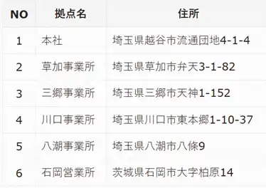 | 本社所在地: 埼玉県越谷市流通団地4-1-4 | |||||||||