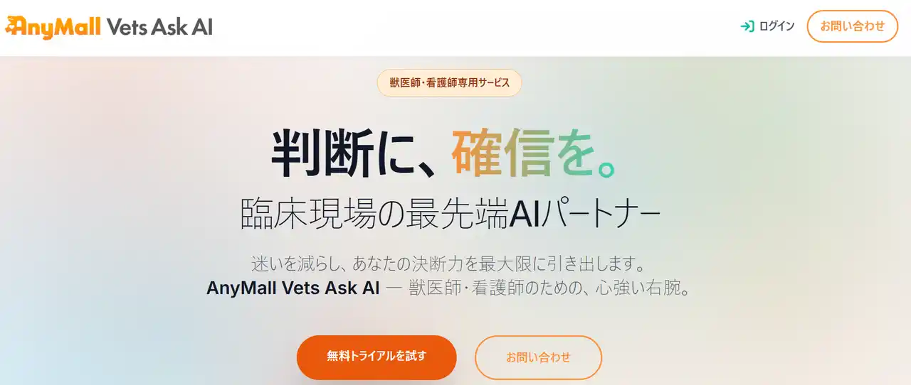 1. AnyMall Vets Ask AI(獣医師・専門家向けAIパートナー) |