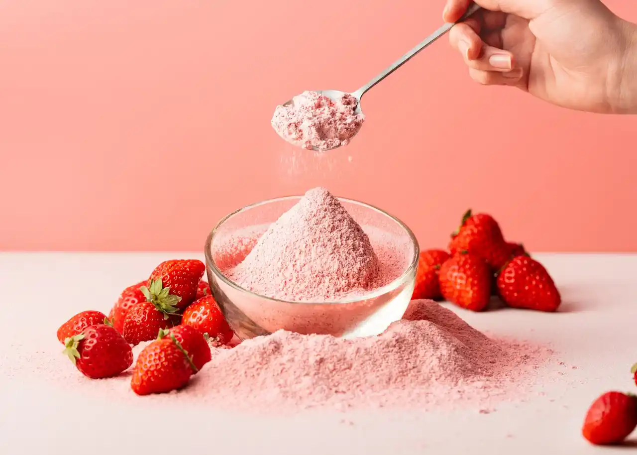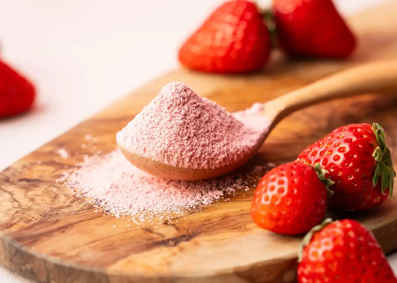 いちごパウダーのイメージ写真。いちごの風味も栄養もまるっとパウダーにしました。 |