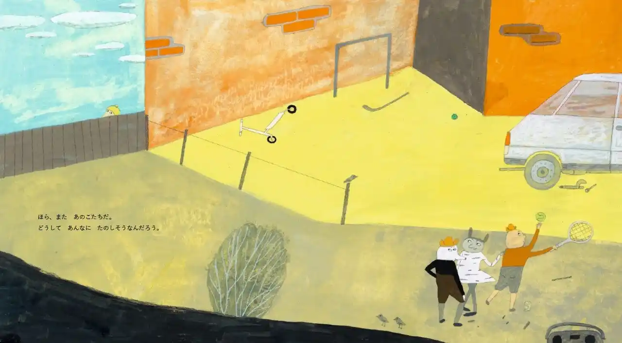 フランクはいつもひとりぼっち。仲良く遊ぶ子たちを遠くから眺めています。けれど、なかなか声をかけることができません。 |