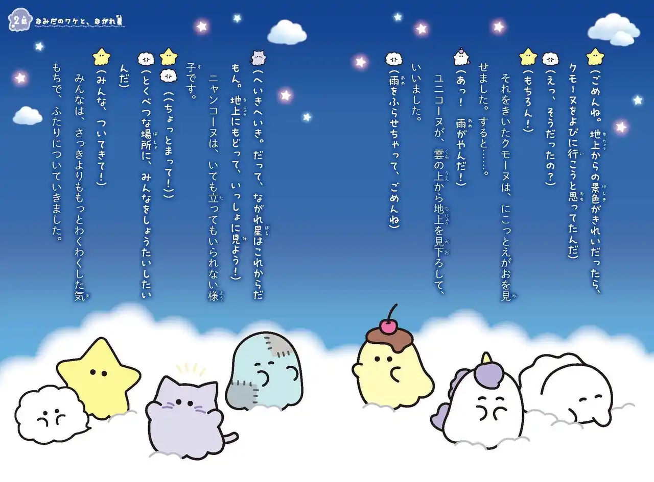 | 今日は、一年に一度のながれ星の日。それなのに、急に大雨がふってきた! あわててお家に入ると、星型のオバケーヌがたずねてきた!? | |||||||||