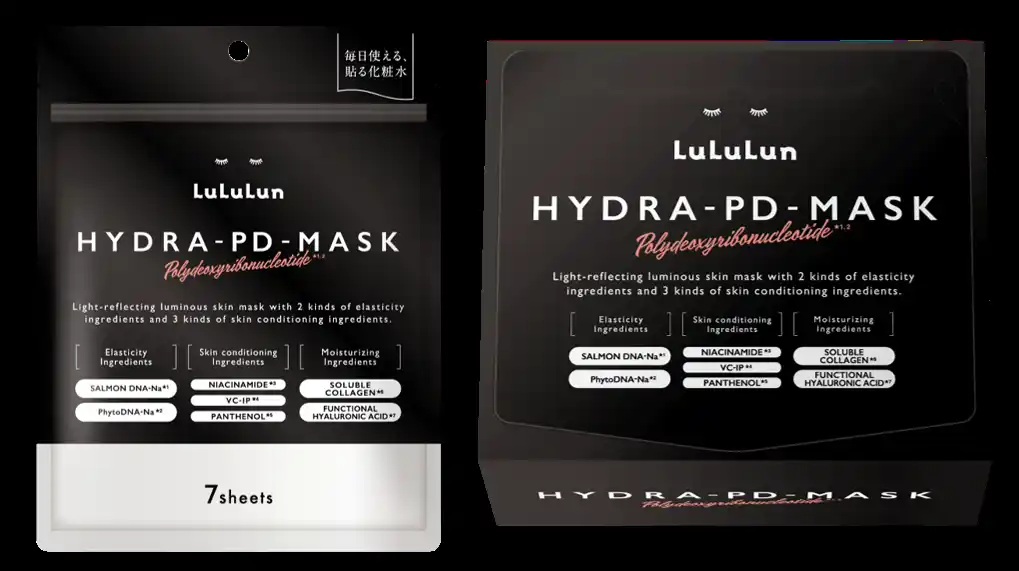 新しく誕生する「ルルルン ハイドラ PD マスク」はハリツヤ不足でしぼみがちな肌※1の方に向けて、サーモン由来のPDRN*1と植物由来のPDRN*2の2種類を配合。 |