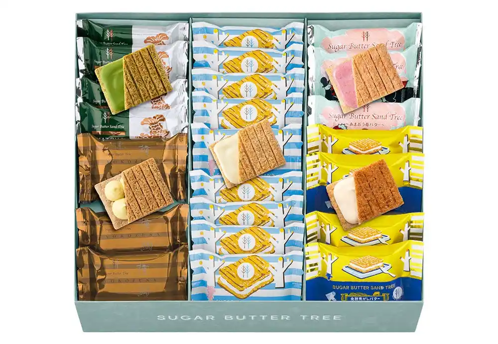 シュガーバターの木は、東京を代表する洋菓子ブランドのひとつ「銀のぶどう」のプロデュースにより、2010年に誕生し、今年でブランド誕生15周年を迎えた〈バターシリアルスイーツ〉の専門店です。独自ブレンドで焼き上げた香ばしいシリアル生地にバターを贅沢にかけあわせる特別製法で、新定番の美味しさを実現しました。一番人気の『シュガーバターサンドの木』をはじめ、季節限定味など数多くのバリエーションと間違いのないおいしさでファンを増やし続けています。 |
