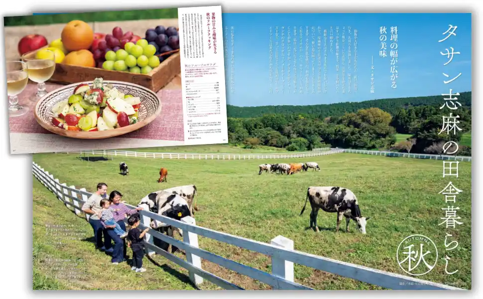 古民家のある静かな里山を舞台にした大好評のタサン志麻さんの季節連載。今号は志麻さん流、秋食材の味わい方を教えていただきました。搾りたての牛乳で作ったホワイトソースは、クロックムッシュやグラタン、シチューに。さらに、秋のフルーツを魚や肉などと調理するオリジナリティたっぷりのレシピもご紹介。秋のごちそうと志麻さん一家の心豊かな暮らしをお届けします。 |
