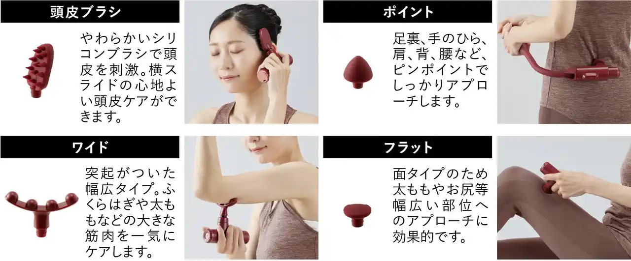 | POINT2:頭皮からふくらはぎまで全身ケア 4種のアタッチメント | ||||||||