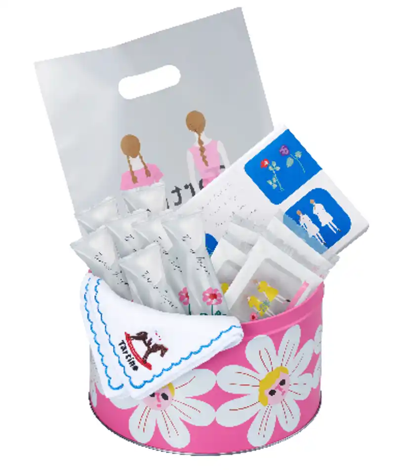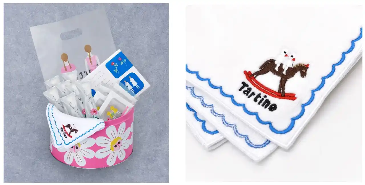 花とチョコレートのブランドとしてリニューアルした「タルティン」から、新しくなったお菓子と雑貨がセットになった限定商品「タルティンミックス丸缶(大)」を販売いたします。「タルティンミックス丸缶(大)」は、タルティンのお菓子「タルティンブーケ」「ダリア」「タルト」、オリジナルデザインのタオルハンカチ、お渡し用としてもお使いいただける小分け袋を詰め合わせた限定商品です。オンラインショップではブランドリニューアル後初の販売となります。自分へのご褒美や贈り物にぜひご利用下さい。 |